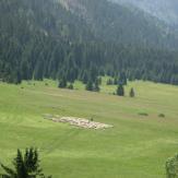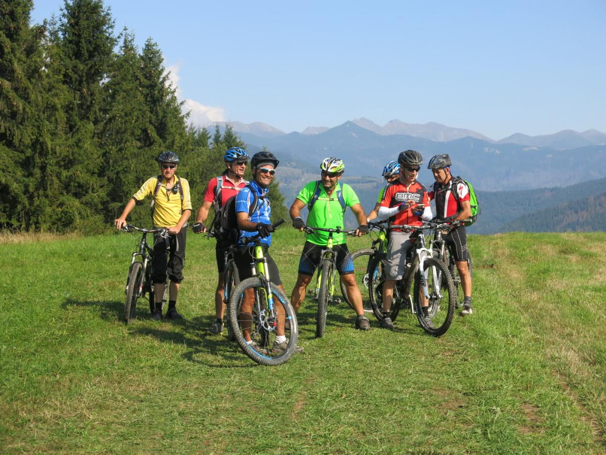 Wir starten im Ort Vazec beim Eintritt in die bekannte Tropfsteinhöhle (792 M). Hier beginnt ein schöner Forstweg, der sich ruhig schlängelt über Sattel Kreslo (934 M) zum Fluss Cierny Vah (781 M). Hinter der Brücke wartet auf uns märchenhafte Strecke. 9 Km immer hinauf im dichten Wald, wo man Glocken muss, um nicht Bären überraschen. Rastpause ist bei der Jagdhütte Zadny Grun (1320 M). Weiter radeln wir auf verlassenem Ausläufer der Niederen Tatra. Wiesen wechseln mit Fichtenwald. Immer hügelig. Endlich kommt längere Abfahrt, die beim Bach Benkovsky potok endet (1045 M). Dann kommt die richtige Perle. Auffahrt auf Berg Panska hola (1429 M). Zuerst noch Waldweg, später schmaler Pfad a dann unendliche Weidefläche nur mit Schaff und Kuhespuren. Vor uns ragen die Hohe Tatra aus und hinter uns empört sich Königsalm (1949 M) -der letzte Gipfel des langen Kammes (105 Km) der Niederen Tatra. Die lange Abfahrt nach Bergort Liptovska Teplicka (907 M) wird das technische Können der Radfahrer überprüfen. Nach Erfrischung im Wirtshaus gelangen wir schnell wieder bei Fluss Cierny vah, eigentlich hier nur lebhafter Bach. Weiter folgen wir nur Strom, lang hinunter. Zum Abschluss noch eine Steigung durch Hlboka dolina um unser Ausgangspunkt in Vazec zu erreichen. Dann noch Autofahrt nach Telgart (unser 2. Standpunkt). 55 Km, 1390 Höhenmeter.